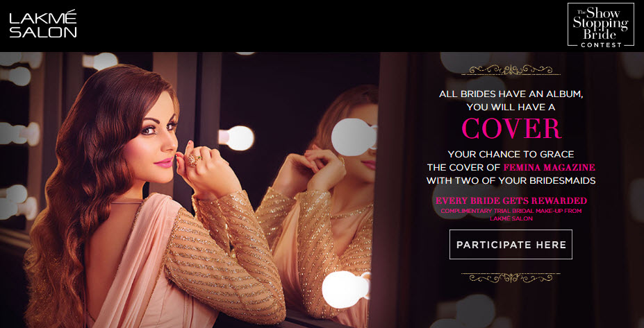 #1. The bride needs to form a team of three (the other 2 being unmarried friends who are expected to get married soon) and register on Lakme’s microsite [Click Here To Register]. They have to share it on their personal Facebook profiles and ask people to vote for their team so that they can stand a chance to feature on Femina’s cover page. They get a free makeup voucher once all of them register.