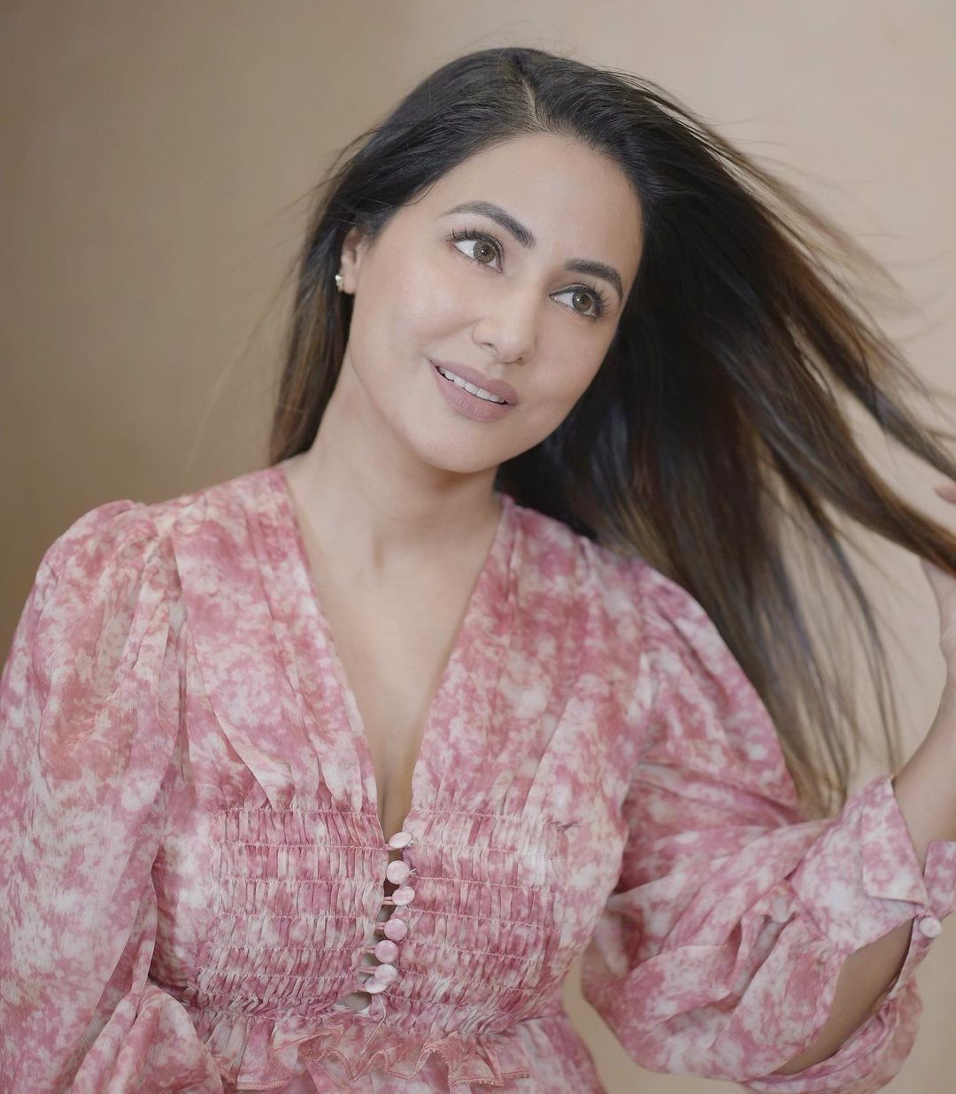 After foundation and setting powder, Hina starts her glam-up routine with blush. She loves applying it to her cheekbones and nose. Hina believes that she can only survive on a blush-on. After which, she puts eyeshadow to enhance her eyes. The actress shared that she loves playing with brown and red tones for her eyes.