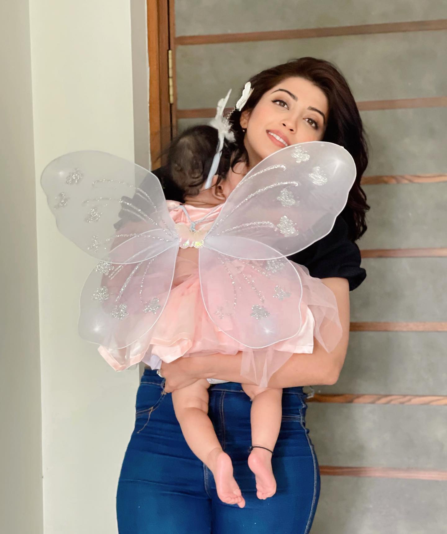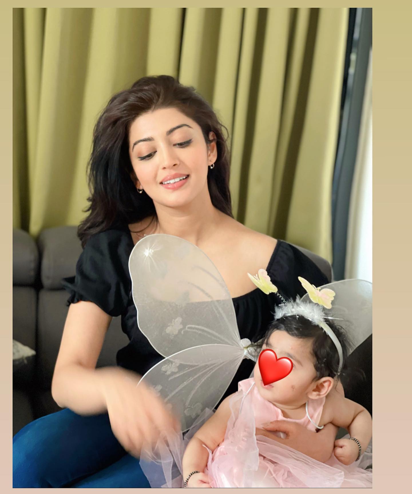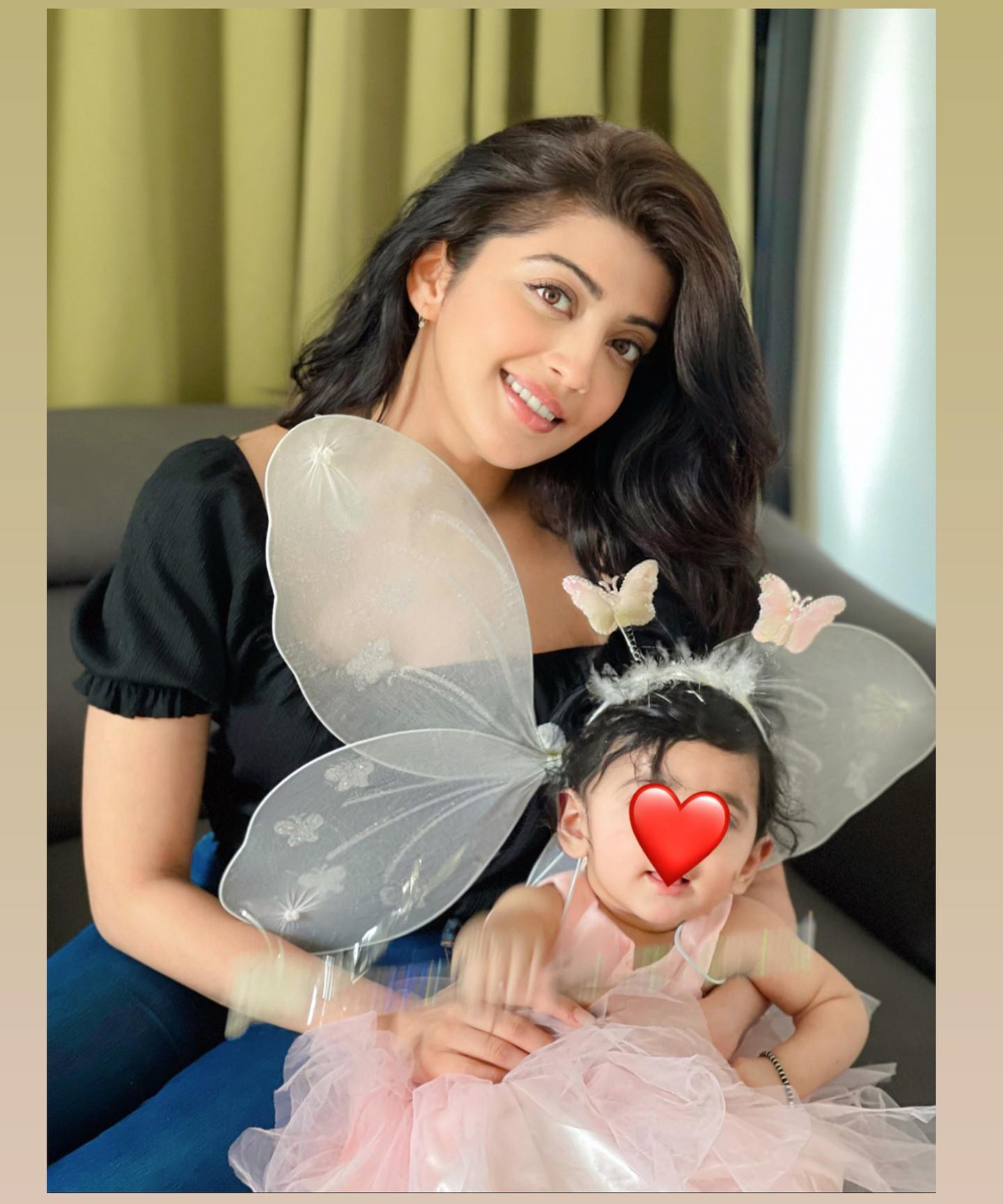 A few moments back, Pranitha Subhash took to her IG stories and shared cutesy moments with her baby girl, Arna. In the picture, the doting mommy looked stunning, as always, in a black top paired with denim pants. However, it was Pranitha's baby doll's butterfly avatar which was too cute for words. The baby girl was decked up in a pink ruffled dress paired with a shining pair of wings, a matching furry hairband and a fairy stick. Indeed, the munchkin looked absolutely adorable. Sharing it, the doting mommy wrote: