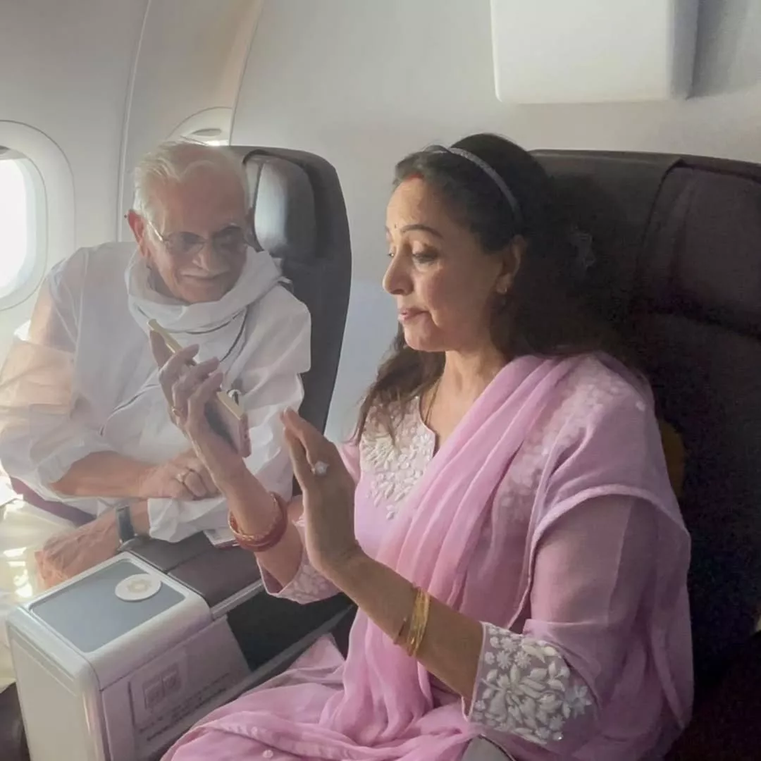 As Hema and Gulzar bumped into each other on a flight to Delhi recently, the former couldn't help but gush about the moment on social media. Taking to her Instagram handle, the diva dropped some adorable glimpses of her and Gulzar at the airport terminal and on the flight. She also penned a heartfelt caption about how they conversed for hours and were so caught up in it that they didn't even realise they had reached their destination.