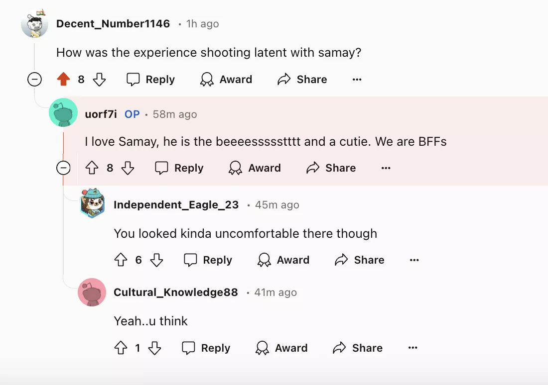Earlier, Uorfi Javed had engaged in a Reddit Q&A session with fans, during which a fan had asked her about shooting the previous India's Got Latent episode in which she appeared. Uorfi had sweetly responded that she loved Samay, saying that he was the best and a 'cutie.' She further added that they were 'BFFs.'