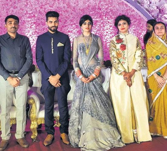 Jadeja and Rivaba getting clicked with their guests at the reception!