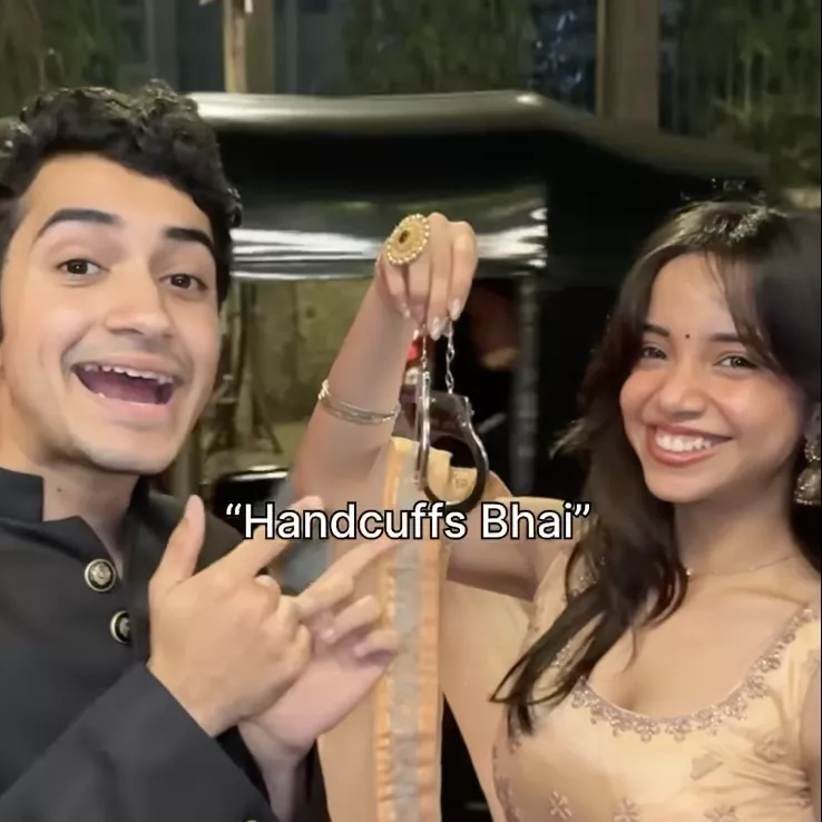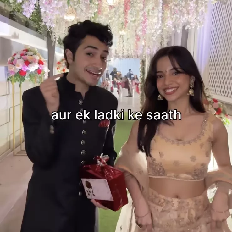 Social media influencers, Sarthak Sachdeva and Muskan Karia took to their Instagram handles on January 6, 2024, to drop a video of them gatecrashing two weddings. In the clip, the duo was dressed to the nines and even got a bouquet as well as a 'naughty' gift, namely handcuffs, to keep up the ruse. Sarthak and Muskan then showed up at the first wedding and entered with 'confidence.' Sarthak, in his voiceover, emphasised that when the guards saw them, they didn't even question whether they were guests or not. They then entered the hall and enjoyed the welcome drink. The aunties at the event, assuming that Sarthak and Muskan were among the guests, even applied a teeka on them.