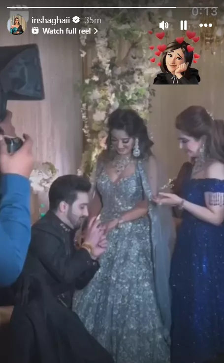 Further, in the clip, Ankit was seen kneeling down on one knee while Insha gave him a tight hug. Then, the duo exchanged rings in the presence of their family and friends, and the heartwarming moment was celebrated by a big round of applause from the people standing beside them. Insha shared this video without any caption but with a sticker with lots of red hearts.
