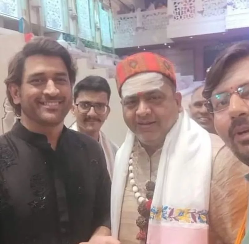 Five pandits were called for the havan puja at Anitila, who were all seen decked up in white-hued ensembles, including kurta pajamas with a cap and a safe. The havan kund was also decorated with flower garlands, and other silveine items. Moreover, a huge statue of Lord Ganesha was placed right at the entrance. Moreover, in another couple of photos, we can spot Isha Ambani, her husband, Anand Piramal, her brother, Akash Ambani, and Indian cricketer, MS Dhoni, along with one of the pandit ji, reportedly to get his blessings.