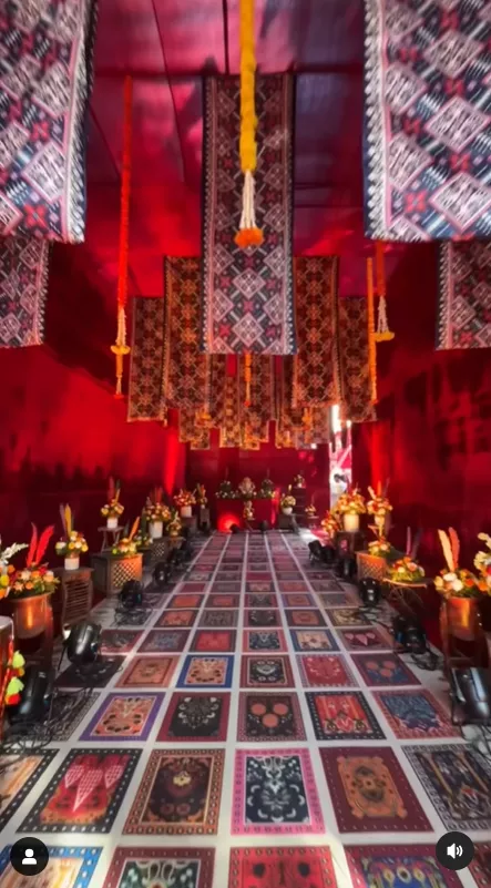 The next ceremony of this extravagant wedding was ‘Dayro’, which is similar to sangeet. It is a community gathering that features narration of folktales mixed with couplets, popular folk songs, and jokes for a night of entertainment. For the event, Deepika opted for a beautiful green velvet sharara set. She chose to keep her makeup and accessories minimal and let her inner glow do all the talking.