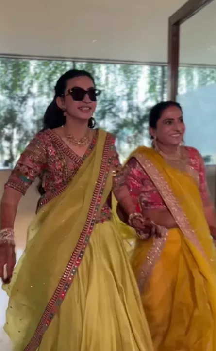 For the haldi ceremony, Deepika donned a simple yet chic lehenga choli. She wore a lime green lehenga and a multi-coloured heavily worked blouse. She went for subtle makeup and accentuated her outfit with a statement neckpiece and earrings. In one of the videos from the ceremony, Deepika’s entire family and her relatives were seen dancing and enjoying their hearts out on this joyous occasion.