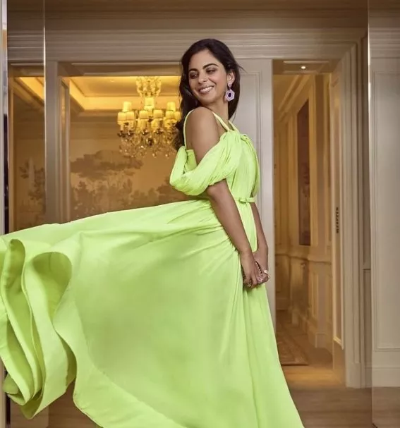 Apart from being a successful entrepreneur, Isha Ambani is a fashionista who never fails to experiment with her looks. A few days back, pictures of Isha from the BOF 500 Gala in Paris surfaced on social media, and her look at the event was breathtaking. For the day, Isha slipped into a parrot-green-hued gown from Giambattista Valli Paris. The off-shoulder dress had strappy sleeves attached to fell-off sleeves that elevated the simple yet gorgeous outcome of the dress. Isha's dress came along with a flowy bottom with layers and a glossy bow detailing in the waist portion.