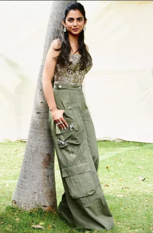 In an interview with Vogue, Isha Ambani’s stylist, Anaita Shroff Adajania, discussed the businesswoman’s safari-inspired outfit. She revealed that the bejewelled corset top was from Isha’s wardrobe, which she bought during her college days. Anaita paired this heavily embellished top with more relaxed cargo pants. Highlighting the importance of reusing clothes, Anaita said: