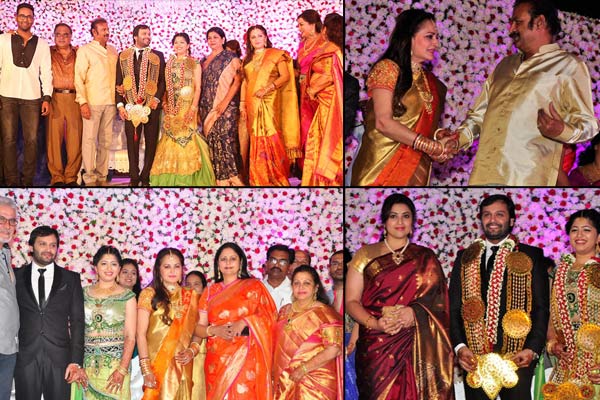Kannada superstar, Ambaressh also graced the occasion with his wife, actress Sumalatha. Other Tollywood’s celebrities present at the wedding reception were Vishnu Manchu, Rajasekhar and his wife Jeevitha, actress Jayasudha, Mohan Babu, actress Meena, and Manchu Nirmala Devi.