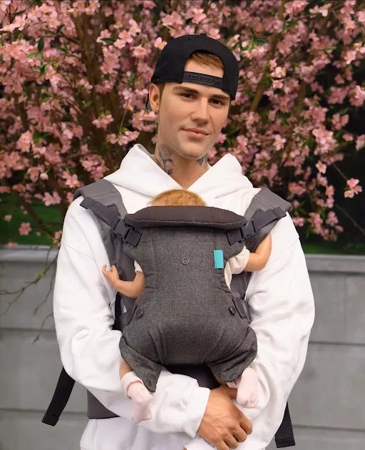 On May 10, 2024, Justin Bieber and Hailey announced their pregnancy news, and on May 11, 2024, Madame Tussauds gave the singer's wax statue a makeover. In the updated statue, Justin Bieber can be seen wearing a baby-pink-hued hoodie paired with a reversed cap. The highlight of the statue was the baby carrier Justin's statue was seen wearing on his shoulders along with a baby in the carrier. Madame Tussauds shared pictures of the updated statue and wrote: