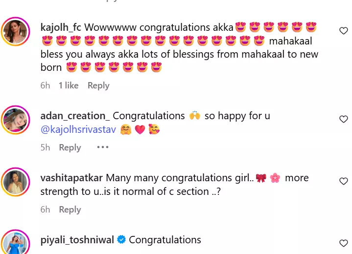 Congratulations! Was in order for Kajol and Ankit as they were waiting for their little bundle of joy to arrive. One of her fans commented on her Instagram post, "Wowwwww congratulations akka mahakaal bless you always akka lots of blessings from mahakaal to new born." One fan wanted to know if Kajol had a normal or a c-section delivery and wrote, "Many many congratulations girl..more strength to u..is it normal of c c-section? One user also shared, "Many congratulations to the beautiful mother of baby boy and lots of love to baby boy."