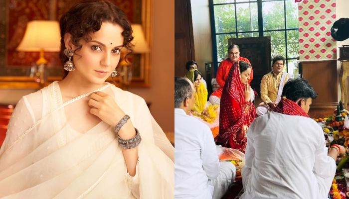 Kangana Ranaut is one of the most beautiful and talented actresses in Bollywood. The actress is known for her bold and unapologetic attitude. Moreover, the diva is loved by millions for her exceptional acting skills. Kangana has proven her mettle in acting by working in blockbuster films like Emergency, Queen, Chandramukhi 2, Dhaakad, Thalaivii, Tanu Weds Manu, Krrish 3 and many more. Despite reaching great heights in her career, Kangana is attached to her roots. And the diva gave a glimpse of the same as she performed puja at her home.