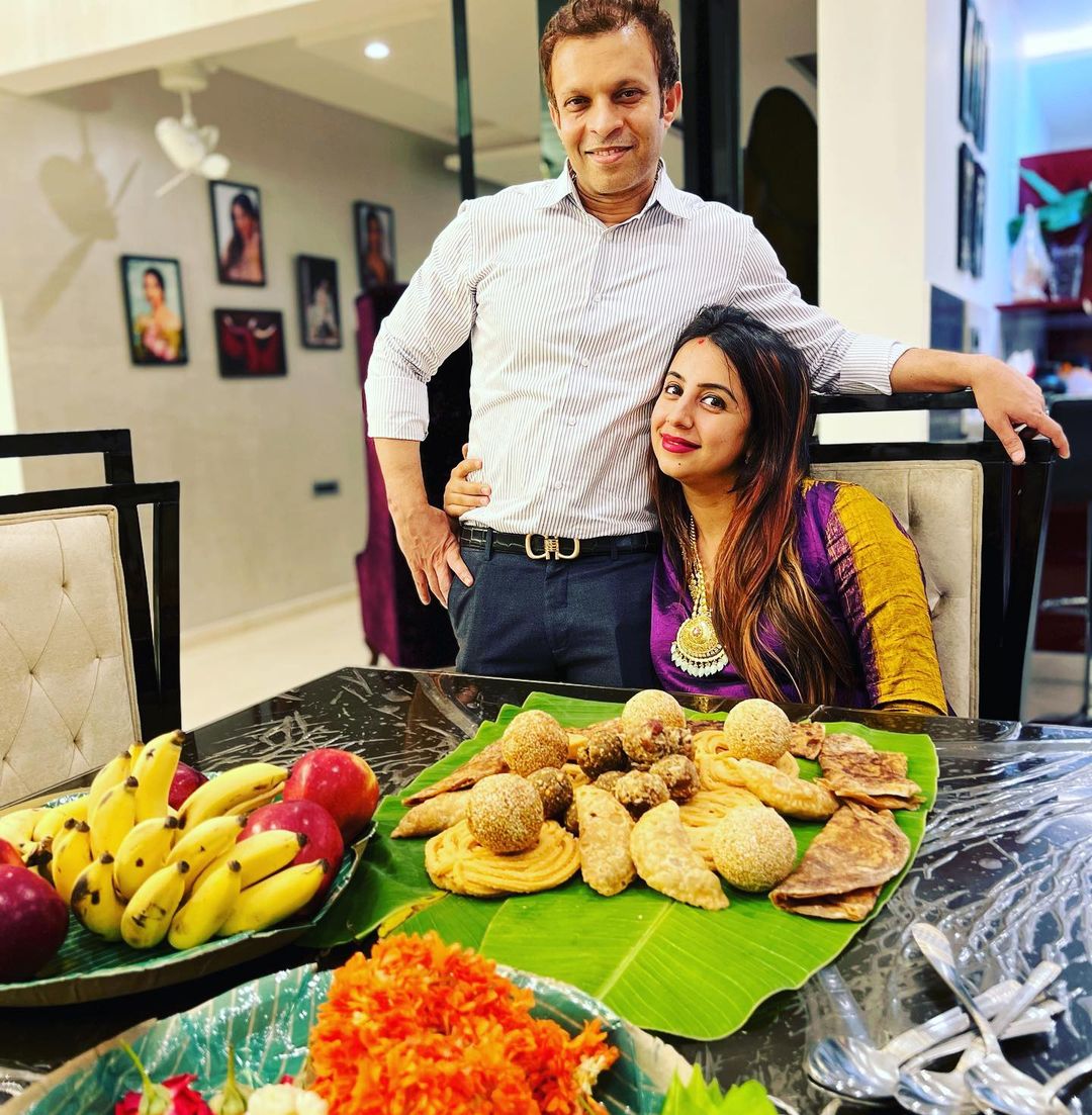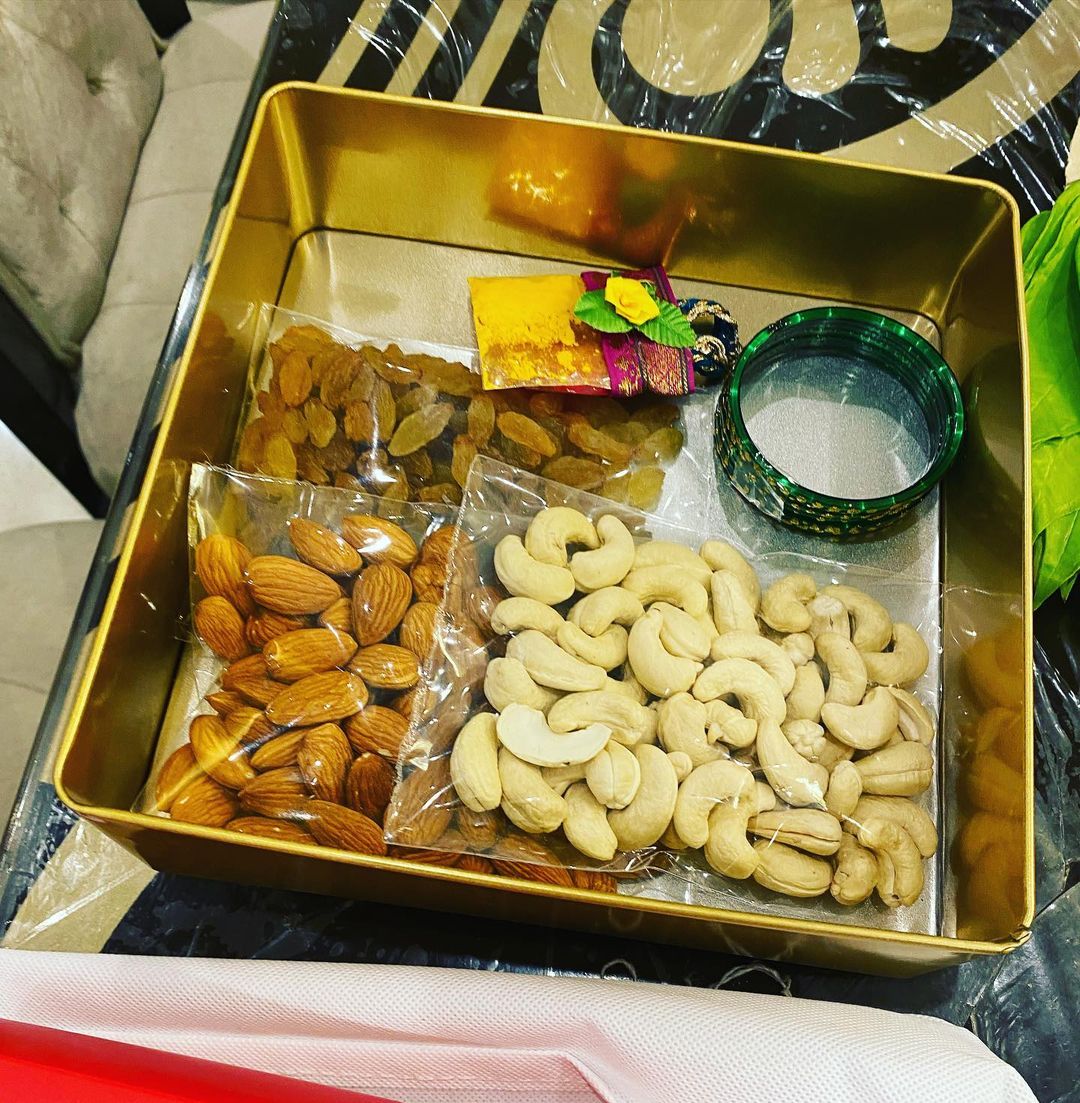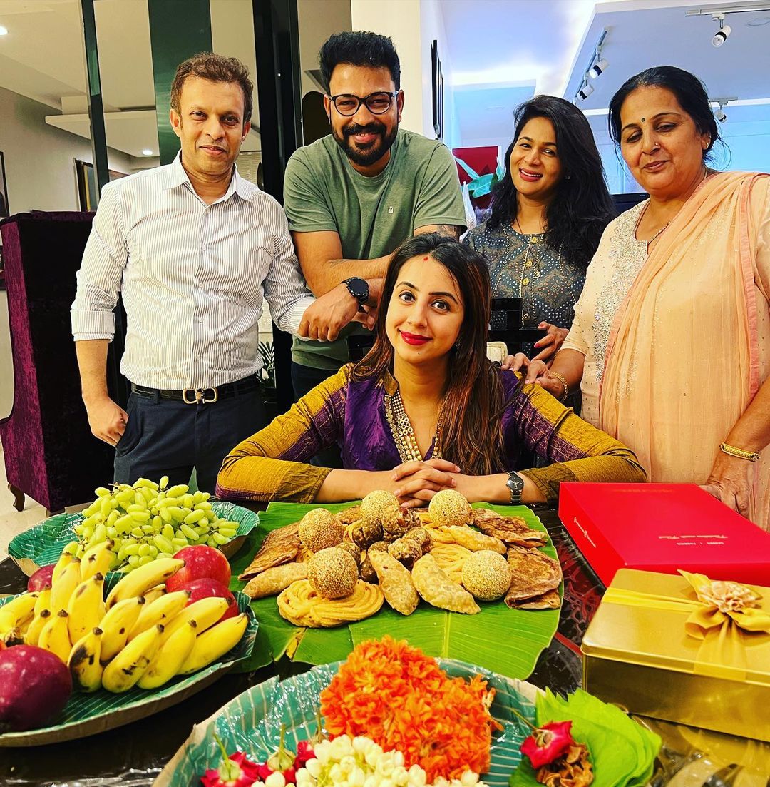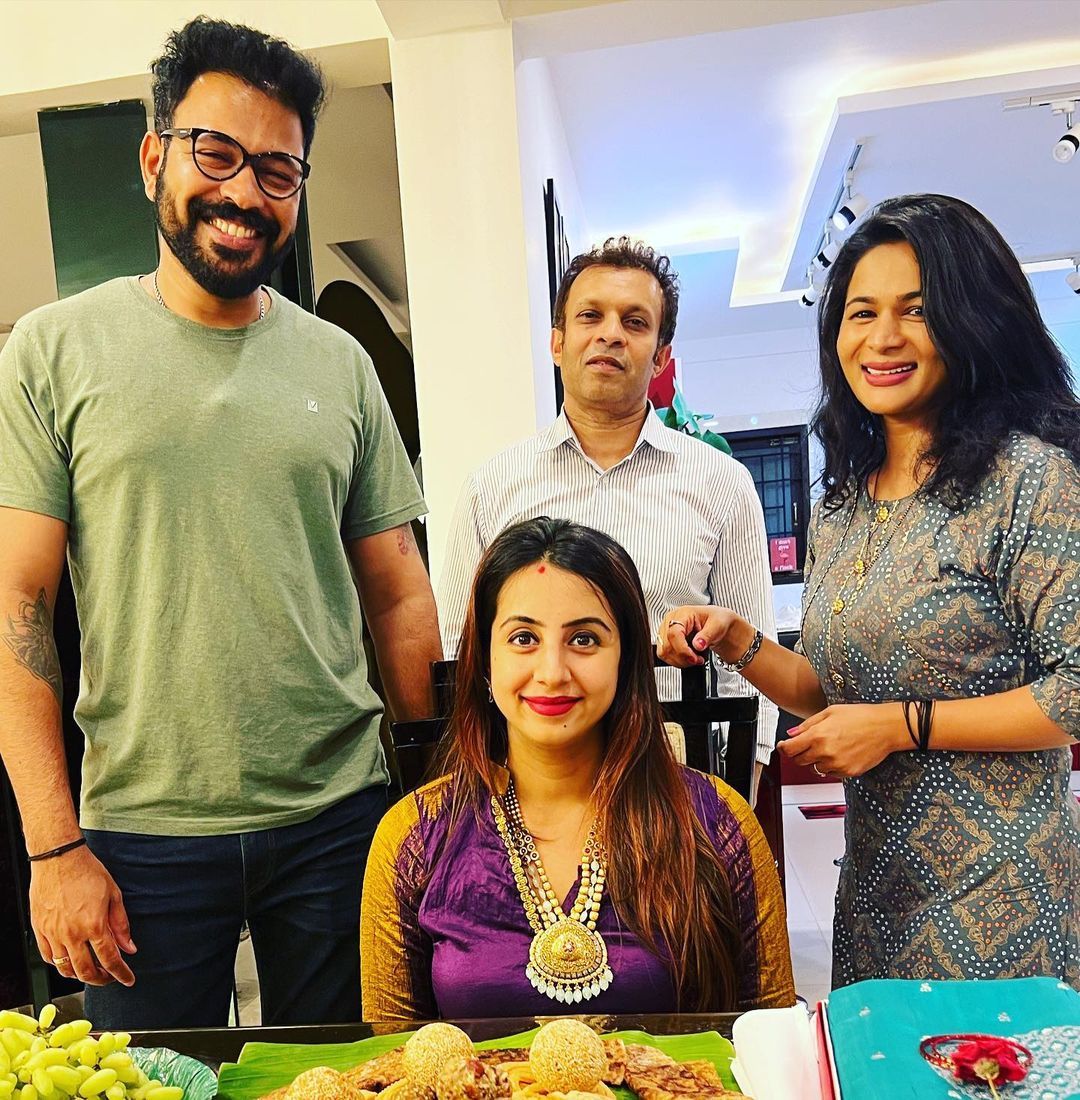 "It was wonderful to have a few family members over yesterday as we conducted a simple #srimantham in a simple traditional South indian style yesterday."