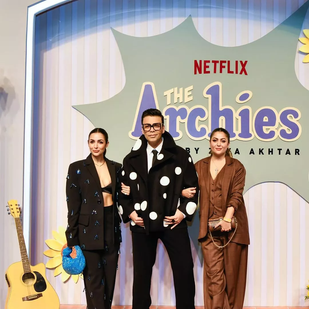 Among the stars, the filmmaker, Karan Johar, graced the carpet with his quirky sartorial choice. He paired a Valentino's polka-dotted double-breasted blazer with black pants. He complemented his outfit with a pair of white boots and funky sunglasses. After watching the movie, Karan penned his heartfelt two cents about the film, The Archies, on his official Instagram account. He appreciated the impeccable craft of Zoya Akhtar and Reema Kagti. Karan heaped praises on the ‘new kids on the block’ such as Agastya Nanda, Suhana Khan, and Khushi Kapoor, who made their Bollywood debut.