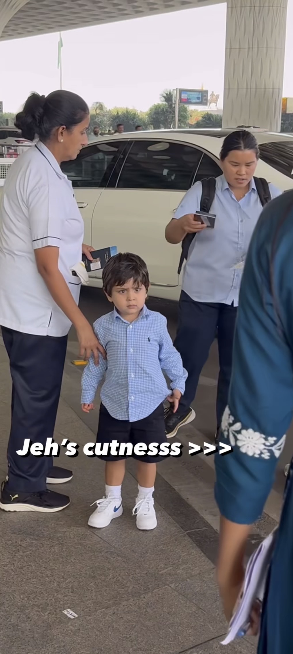 On November 13, 2023, Kareena Kapoor Khan and her family were spotted at the Mumbai airport. In the video doing rounds on the internet, we can see Jehangir looking cute as a button in a blue-hued checkered shirt and black shorts. He completed his look with a pair of cool white sneakers. However, what caught our attention was the cutesy antics of the baby boy as he was seen throwing tantrums in the video.