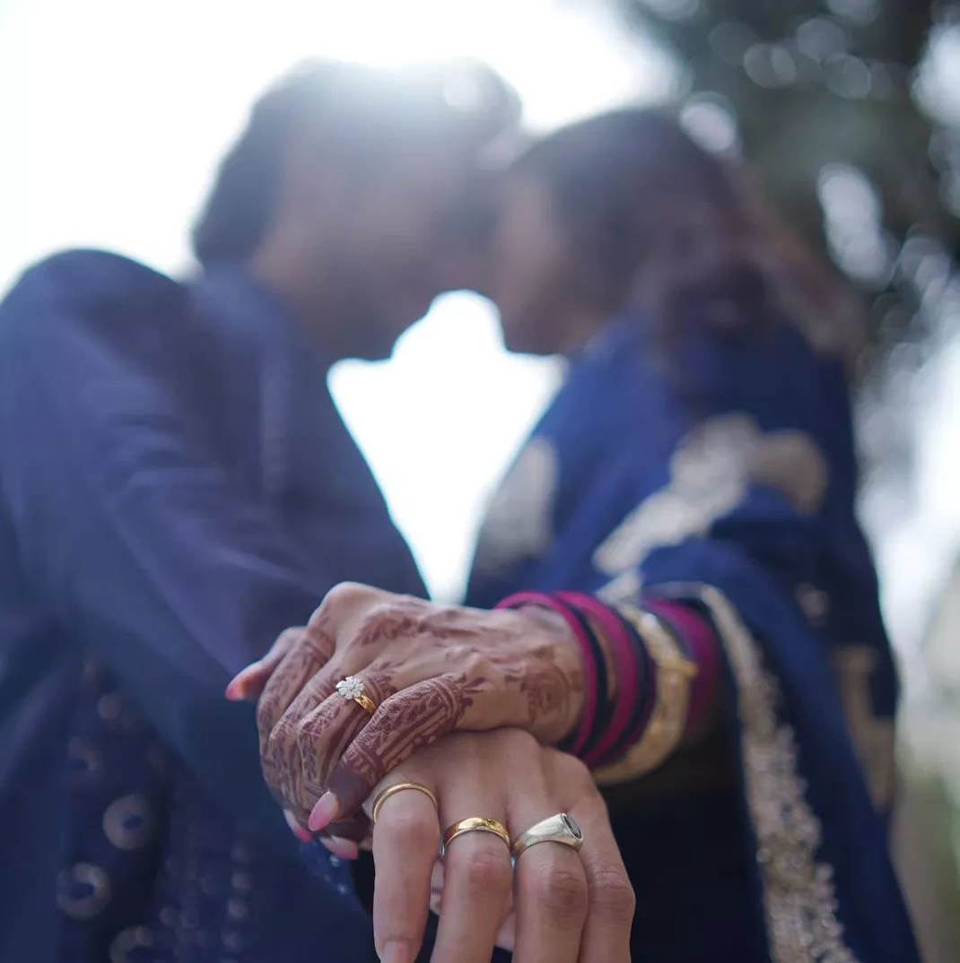 While scrolling through our Instagram account we came across a few glimpses from Kinshuk and Diiksha's engagement ceremony. For the engagement, Kinshuk donned a blue-hued kurta set with golden patchwork on it. He completed his looks with white pants and a blue dupatta. Diiksha on the other hand opted for a blue saree which she paired with a pink blouse that had brocade work all over.