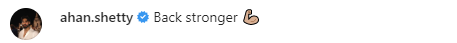 As soon as KL Rahul's IG post went live, it was his future-sala and actor, Ahan Shetty, who commented, "Back Stronger", followed by a flexing biceps emoticon. Everyone is aware of the fact that Ahan and KL Rahul share a warm bond with each other, and this gesture from the actor once again proved it right. After a few minutes, KL Rahul's girlfriend and Ahan's sister, Athiya Shetty shared the cricketer's picture on her IG story and put a red heart emoticon atop it. The doting girlfriend wrote nothing but her sweet gesture was enough to speak volumes about their love for each other. Check it out!