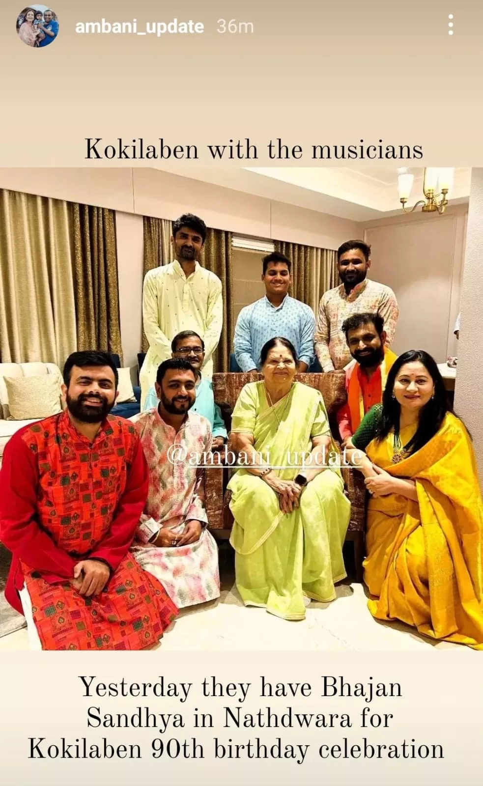 Late businessman Dhirubhai Ambani's wife, Kokilaben Ambani, turned 90 years old on February 24, 2024. Thus, Kokilaben's kids, including Mukesh Ambani, Anil Ambani, Nina Kothari, Deepti Salgaonkar and their spouses took their best foot forward to celebrate her birthday in the best form. Now, we are getting unmissable glimpses from the lavish celebrations made in honour of Kokilaben by her doting children.