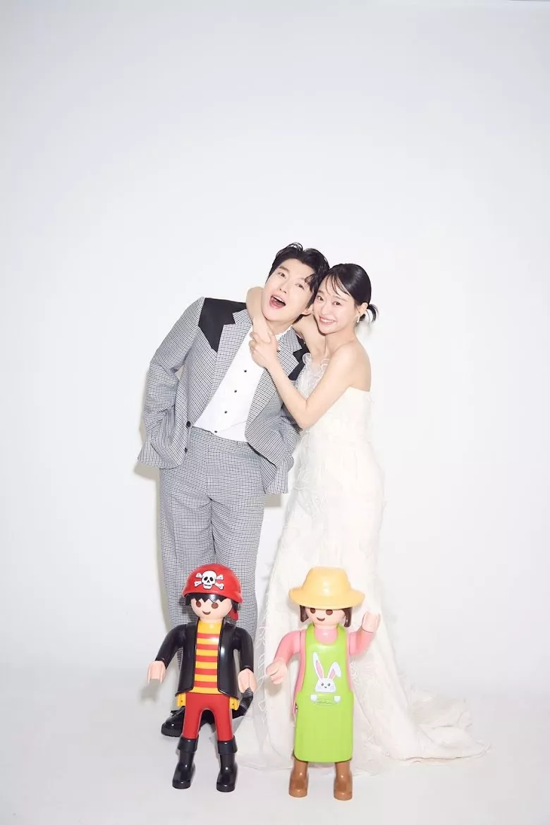 Bae Doo Hoon and Kang Yeon Jung tied the knot in an intimate but lavish ceremony, and now the couple took to Instagram and shared beautiful snaps of their wedding ceremony. The couple looked much in love and delighted at their bridal photoshoot with pirate cartoon caricatures. In another such loved-up snap, Kang Yeon Jung amped up her embellished bridal gown with a baseball cap.