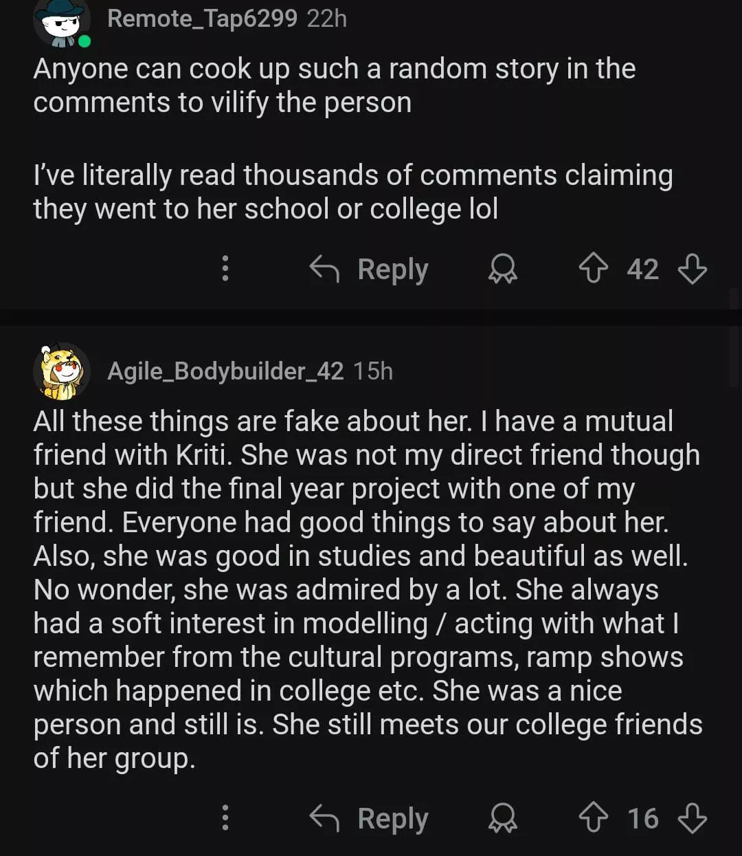 After the comment of Kriti Sanon's self-acclaimed college mate went viral, the actress' fans came in her support and claimed that anyone could make stories up about the actress. A user commented, "We are believing random Youtube comments now? Anyone can cook up a story and write whatever they wish." Another user penned, "Anyone can cook up such a random story in the comments to vilify the person. I’ve literally read thousands of comments claiming they went to her school or college lol."