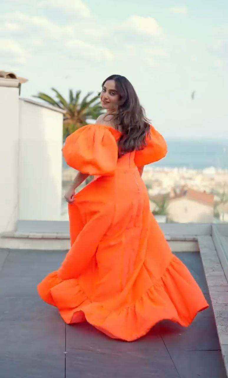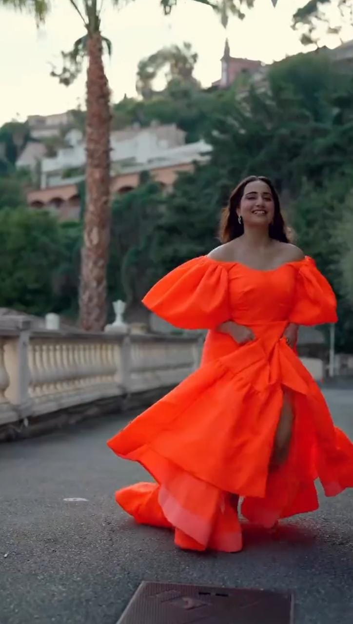 Taking to her IG handle on May 22, 2023, Kusha Kapila shared a stunning video shot at the beautiful lanes of Cannes. She was seen recreating the super special 'Yashraj movies moment' of the pivotal female character running through the lanes beside the historical monuments, letting her dress and hair flow along with the wind. In the video, Kusha looked gorgeous as always, in an orange flowy gown.