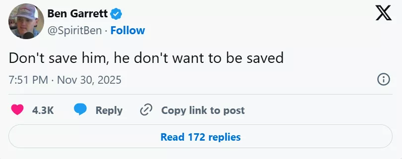 Ben Garrett recently took to his X account and shared a cryptic tweet that said, "Don’t save him, he don’t want to be saved." Although it isn't clear who the note was directed at, people think that, given the timing, Ben took a jab at Lane again.