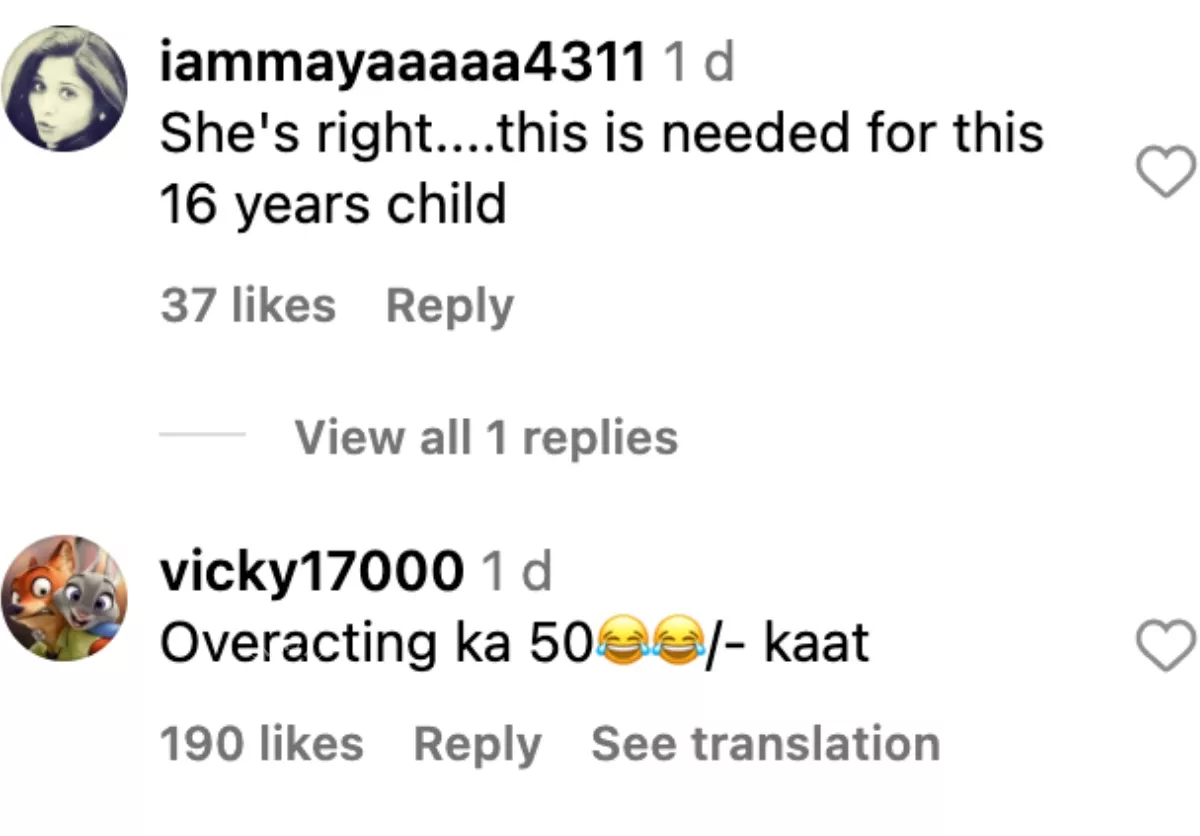 As soon as the video was shared, netizens rushed to express their opinions. One user wrote, "She's right....this is needed for this 16 years child." Another one commented, "She is right...malaika is older than her mother may be.."