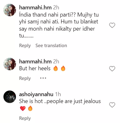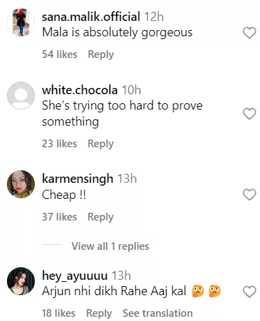 As soon as paparazzi videos of Malaika’s arrival at the party venue started making rounds on social media, netizens started penning down their thoughts on her OOTN. One user said, “India main serdi nhi horahi.” Another one sarcastically said, “Ahhh that's too much long skirt.” A third comment can be read as “She is the hottest one.”