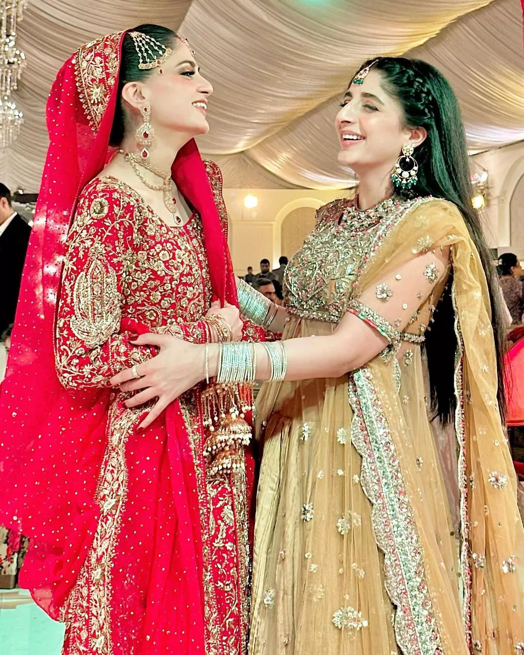 Mawra was seen posing with the bride and other guests in the glimpses, which she posted on the social media platform. However, our attention was caught by the photo where she posed with the bride and her rumoured boyfriend, Ameer Gilani. The actor was wearing a black kurta and salwar, which he paired with a red-hued stole.