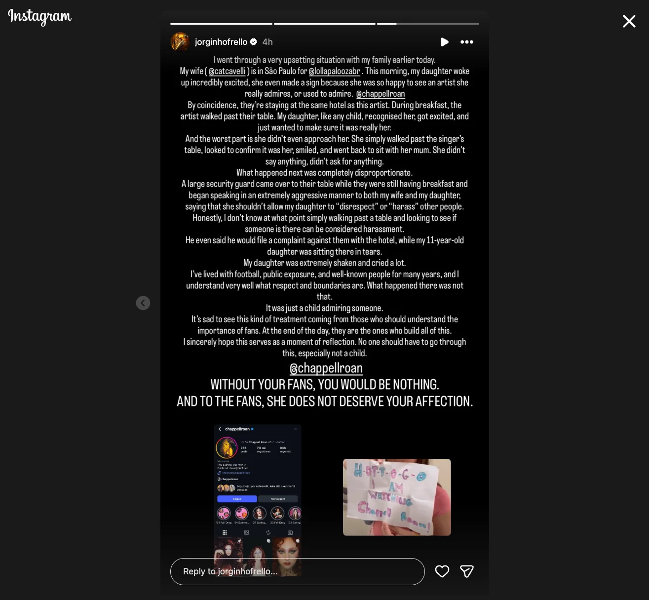 Catherine Harding and her 11-year-old daughter, Ada Law, were reportedly involved in a distressing confrontation with pop singer, Chappell Roan's security at a hotel in Sao Paulo, Brazil, in March 2026. The incident came to light when Catherine's husband, Jorginho, shared a detailed account on Instagram. According to him, Ada (who is a Chappell fan) simply walked past the singer's table during breakfast, smiled to confirm it was her, and returned to sit with her mother.