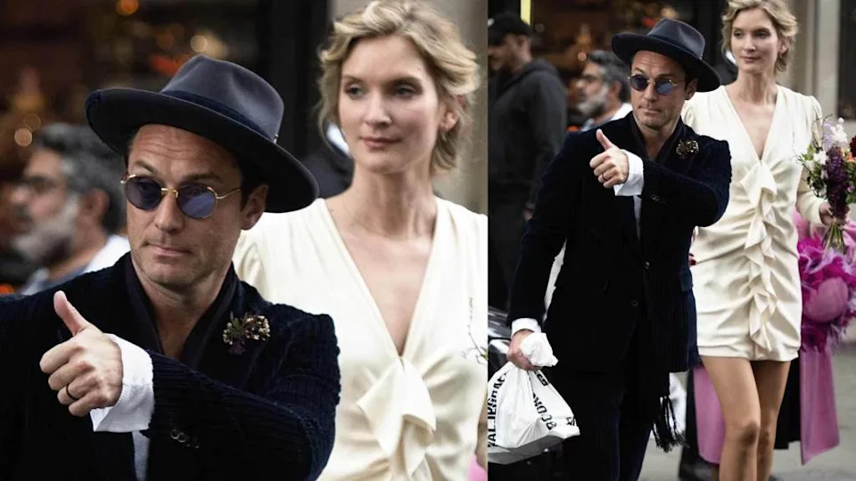 Shortly after their first public appearance, Jude and Phillipa were seen on a romantic trip in Rome, where Law was filming The Young Pope. After four years of dating, they wed on April 30, 2019, in a low-key civil ceremony at the Old Marylebone Town Hall in London. Phillipa wore a short, off-white ruffled cream dress and Jide complemented her in a navy corduroy suit with a matching fedora. The ceremony was highly intimate, attended only by close family and friends, with Jude's eldest son, Rafferty, serving as his best man. Following the town hall ceremony, the newlyweds and the guests moved to the Alfred Dunhill Private Members Club in Mayfair to celebrate.