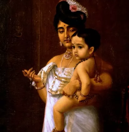 Raja Ravi Varma’s works are exemplary of the fusion of modern art with Indian iconography. The ace painter gained popularity for his religious depictions of Hindu Gods and acclaimed characters from Indian poetry and the Puranas. Ravi Varma was closely related to the royal family of Travancore, and the title of Raja was conferred on him by the Viceroy and Governor-General of India.