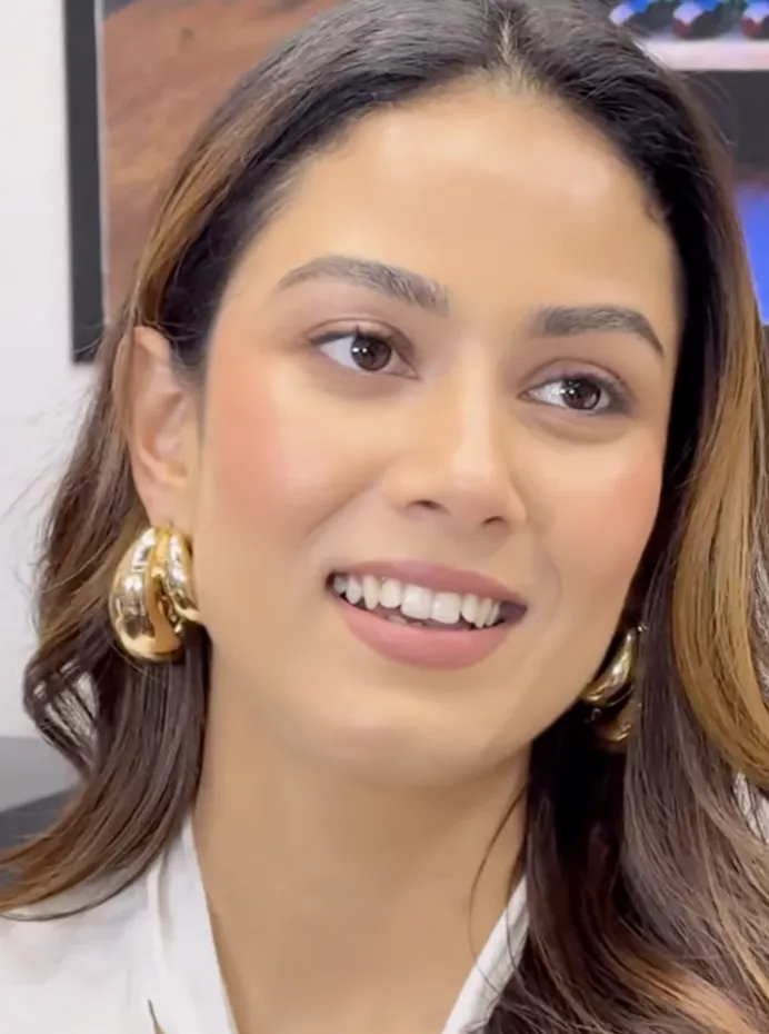 For accessories, Mira went with a pair of gold chunky earrings. She kept her makeup look just as demure as the rest of her look, opting for a dewy base with just the right amount of blush and highlighter. Mira also added a touch of contour to accentuate her stunning features. Her eyes were lined with soft kohl and paired with shimmery lids. For her lips, she went with a nude shade. Finally, she finished the look with her long, luscious locks left open in soft waves.