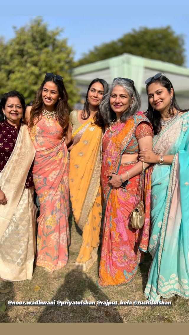 Mira Rajput Kapoor is also a loving sister and often takes time out from her busy schedule to shower love on both of her sisters, Priya Tulshan and Noor Wadhwani. On February 27, 2022, Mira had taken to her Instagram handle and had posted glimpses of her family wedding. For the event, Mira had donned a beautiful chiffon saree in floral print. She had styled it with a sleeveless blouse. Mira kept her entire look subtle and had opted for a statement neckpiece. Apart from Mira’s portraits, what had caught our attention were the snippets with her sisters and other family members that she had shared. Check out below: