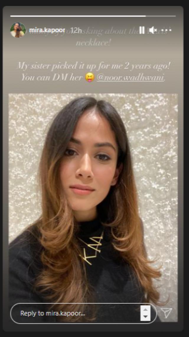 It was on December 18, 2020, when Mira Rajput Kapoor had shared a picture on her IG handle, looking extremely gorgeous. She could be seen wearing a black pullover with outward curled hair and bare makeup look. Her statement ‘MK’ neckpiece had stolen the show, making her fans go berserk asking her about it. Later, Mira had taken to her IG stories to give calm to her curious followers, revealing where she had got her neckpiece from! Sharing the same picture, Mira had written:
