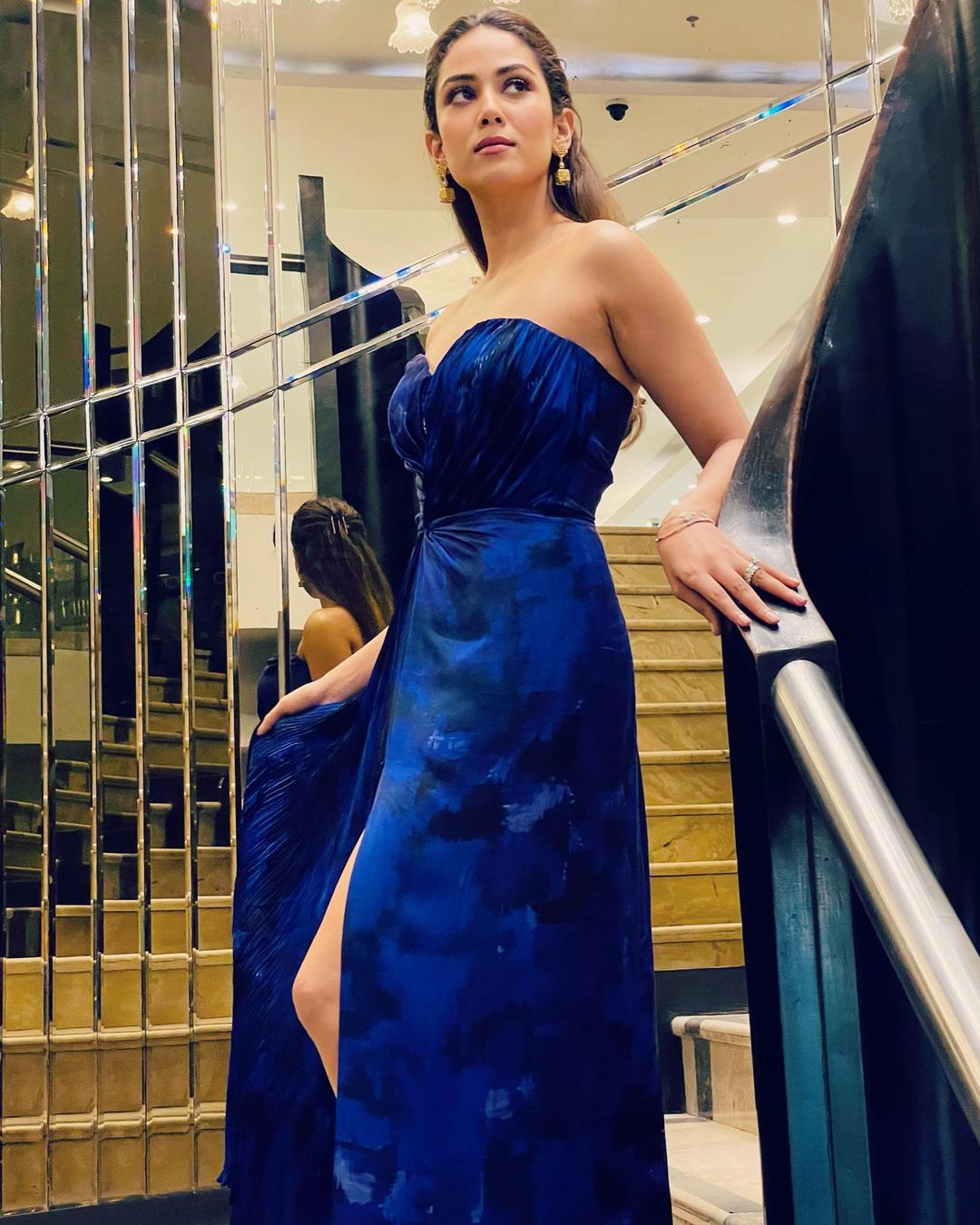 A few months ago, Mira had shared lovely pictures from an event she had been a part of. The influencer had attended Tanishq's latest 'Every Ear' collection launch. The gorgeous star wife had adorned a pretty royal blue-hued dress from the label, Saaksha and Kinni, and Delna Nallaseth had styled it.