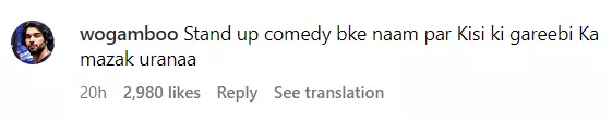 This particular segment from the entire episode spread like wildfire on social media. Netizens have expressed their opinions on Munawar's remark on Naezy's financial condition. One user wrote, "Stand-up comedy bol ke naam par Kisi ki gareebi Ka mazak udana." Another one commented, "Very bad Naezy is so innocent."