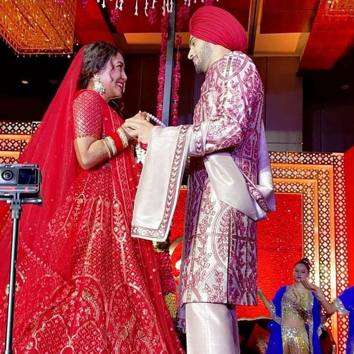 On October 24, 2020, after the grand Gurudwara wedding, Neha Kakka and Rohanpreet Singh had tied the knot as per the Hindu rituals. Neha had looked regal in a traditional bridal ensemble. For the pheras, Neha had opted a red lehenga with a double dupatta. Her look was accentuated with a layered neckpiece, matching earrings and a nath. Hair tied in a loose bun and her subtle makeup had completed her bridal look.