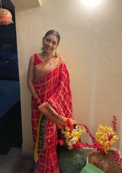 On the occasion of Karwa Chauth, Niti had donned a beautiful red saree with golden work on it. She had shared pictures of her look, and had written, "My First Karwa Chauth! By choosing you, I chose happiness for life. You are the best thing that happened to me.! Beyond you, there is nothing I can see. I love you my bug. Thank you @kalkifashion for gifting me this saree for my first karwa chauth."