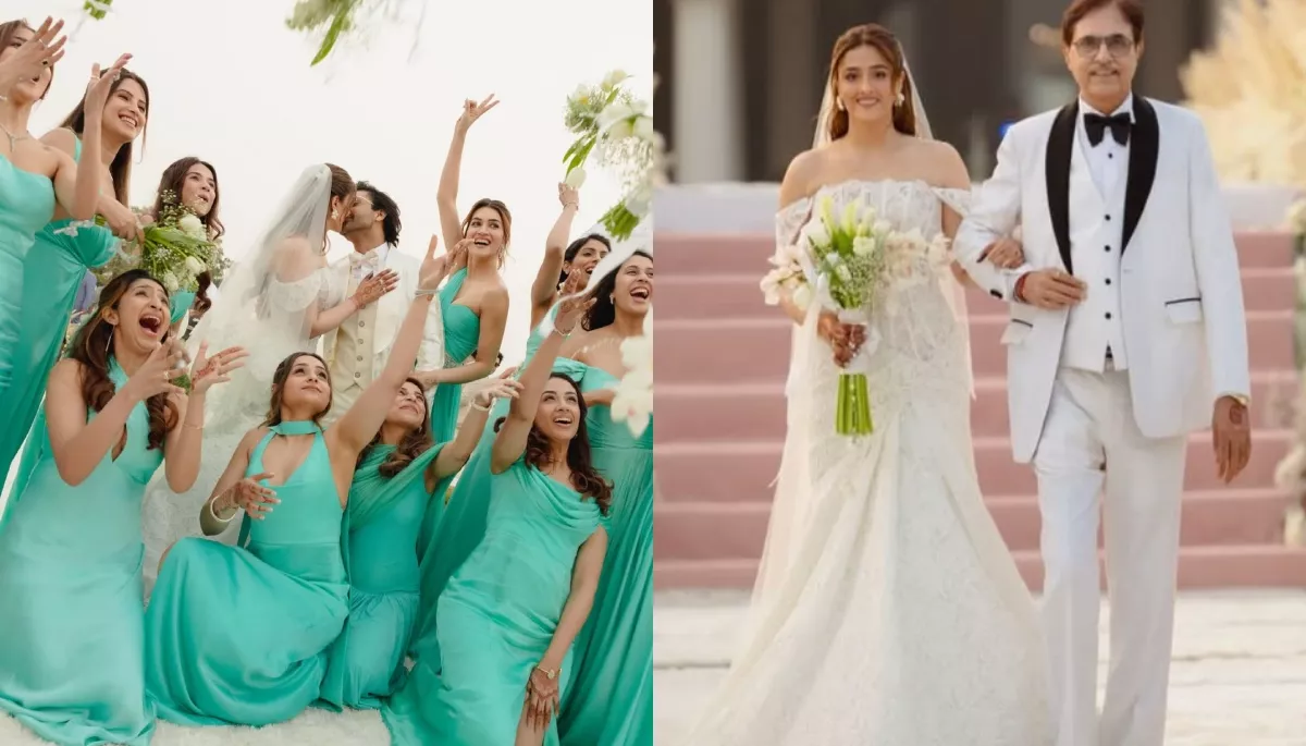 The Sanon sisters are celebrating as Nupur Sanon got married to her longtime beau, Stebin Ben. Their Christian wedding pictures have been circulating on the internet as the two seal the deal with a passionate kiss. The bride won hearts with her unique white wedding gown. And as we are awaiting her Hindu wedding pictures, her white wedding photos are already stealing our hearts.