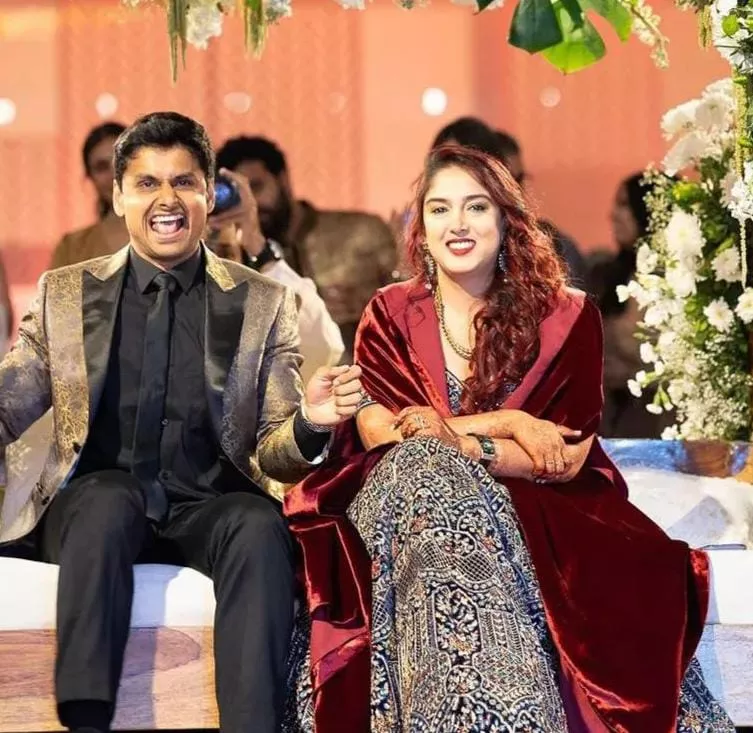 Ira Khan and Nupur Shikhare looked like a match made in heaven as they appeared hand-in-hand at their sangeet venue. In videos and photos, we could see Ira looking beautiful as she was dolled up in a royal-blue-hued embellished lehenga and teamed with a matching blouse. Moreover, what grabbed my eyeballs was Ira's choice of a red-hued velvet-cloaked hood with her lehenga. The diva opted for a sheen touch of makeup and open hair. Nupur, on the other hand, looked dapper in a metallic-toned coat, which he wore with a black shirt and matching pants.