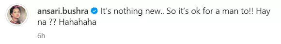 Soon after Bushra Bashir's post, people on the internet started penning down their thoughts in the comment section of the same. While some praised the actress for calling out the double standard, others asked her to live her married life happily without thinking of anyone’s judgement. One user said, “It's also OK for women as well.” Another wrote, “You cannot make everyone happy love. Just stay happy and block negativity from your life. Wishing you a happy life.” A third netizen penned, “Mam you did nothing wrong, no need to justify.”