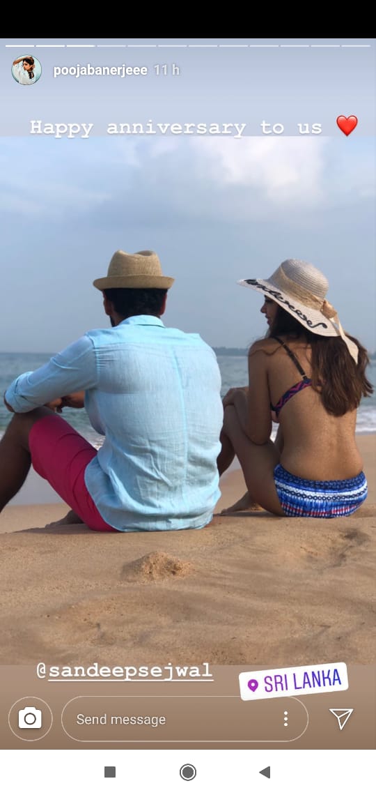 The lovebirds walked down the aisle on February 28, 2017, and since then they are giving us couple goals. Currently, Pooja and Sandeep are enjoying their vacation in Sri Lanka, where they are celebrating their second wedding anniversary. The actress treated her fans with some sneak-peek from her fun-filled day from the exotic location. She posted a couple of pictures on her Instagram handle, wherein the couple can be spotted soaking in sun, sitting beside a beach. Pooja looked gorgeous in two-piece ensemble while Sandeep looked handsome in his casuals. Take a look at their vacation pictures below: