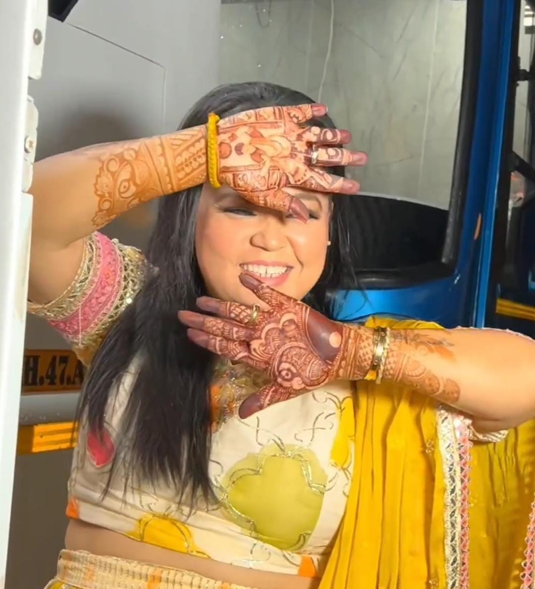 Comedienne, Bharti Singh tied the knot with the love of her life, Haarsh Limbachiyaa on December 3, 2017, and on April 3, 2022, they embraced parenthood for the first time with the arrival of their baby boy, Laksh. Despite being busy with professional commitments and motherly duties, Bharti never misses a chance to shed wifey goals. For instance, during Karva Chauth in 2022, she was spotted by the paps flaunting her beautiful mehendi design. We can spot stunning peacock designs in both her hands and also a woman with a sieve in one of her hands.