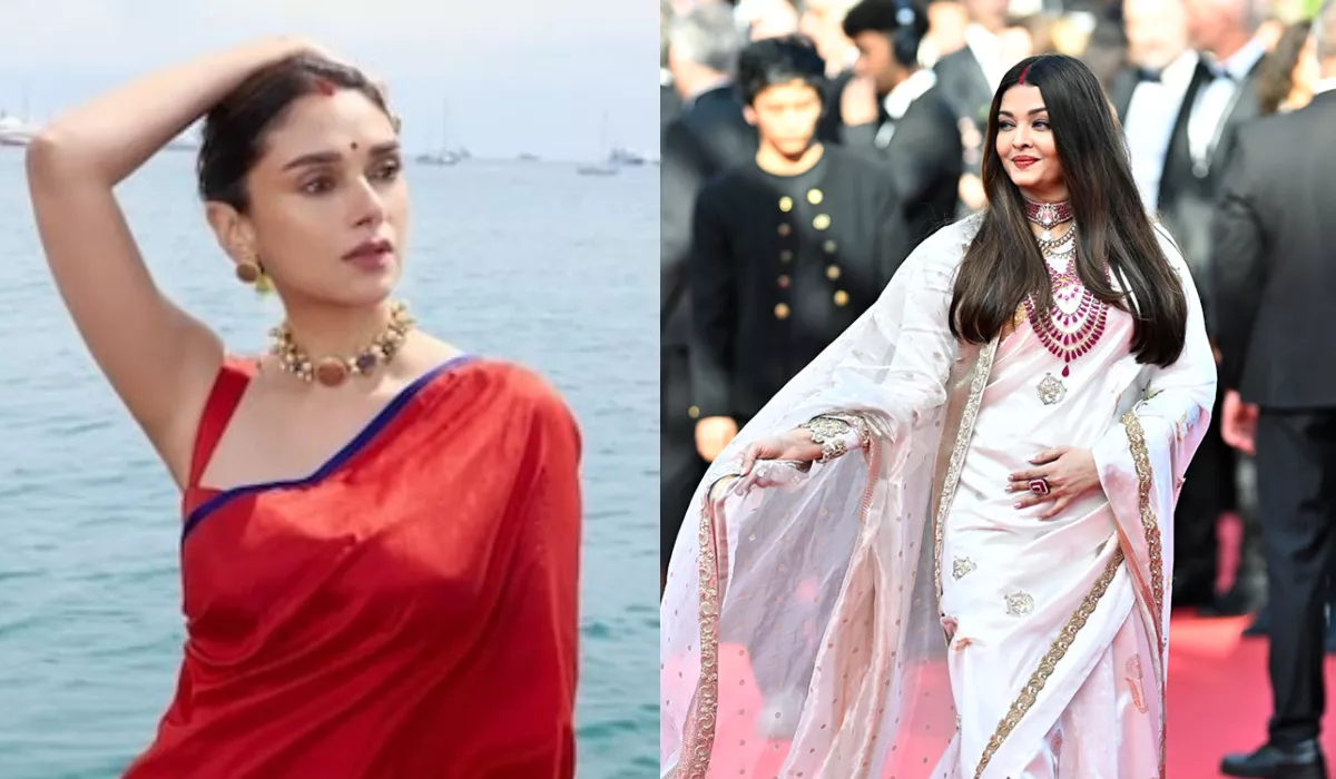Aditi Rao Hydari and Aishwarya have been regulars at the Cannes Film Festival, and both actresses won hearts with their saree and sindoor-clad look. Aditi wore a Sultanah red saree with a deep blue border by Raw Mango. She paired it with a multi-hued choker, earrings and rings. On the other hand, Aishwarya Rai Bachchan channelled her inner diva in a handwoven Kadwa Banarasi handlloom custom saree by Manish Malhotra. The ivory-hued saree featured brocade motifs and real silver zari. However, the real highlight of the look was the actress's heirloom high jewellery with over 500 carats of Mozambique rubies and uncut diamonds set in 18k gold.