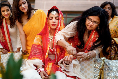 While the magic of their dreamy wedding has not yet faded, we stumbled upon yet another set of pictures from Nickyanka’s beautiful union. Jewellery designer, Mitali Handa shared some adorable pictures of Nick’s haldi and Priyanka’s chooda ceremony. In the pictures, the actress is seen wearing a gorgeous maxi dress with floral embroidery, and Nick looked dapper in a white kurta-pajama. Check out the pictures below: