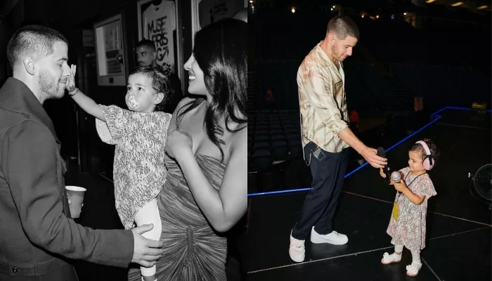 Malti Marie indeed had a blast at her father, Nick Jonas' event in London. The little one looked cute as a button in a printed frock paired with white stockings and a pair of socks. In some of the glimpses shared by Nick, Malti was seen playing with her dad's mic on the stage, and her antics were simply unmissable. The baby girl beamed with happiness and joy as she got the opportunity to be on the stage with her dad.
