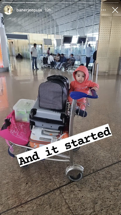 A few days back, Puja Banerjee had headed off to Goa with her son, Krishiv. Taking to her IG stories, Puja had shared a few pictures from the bride-to-be’s travel to Goa with her son and friend, RJ Malishka. In one picture, Krishiv had looked stunned, sitting with the luggage, and in one video, Malishka and Krishiv were seen dancing together. In one of the pictures, Puja, Krishiv and Malishka were seen on a flight and atop it, the RJ had written: