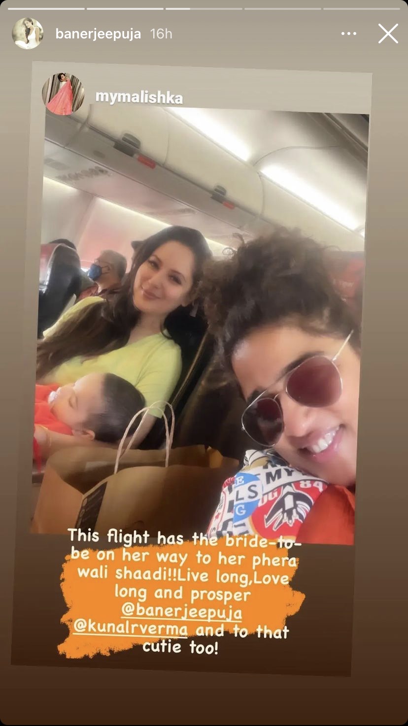 “This flight has the bride-to-be on her way to her phera wali shaadi!! Live long, love long, and prosper @banerjeepuja @Kunalrverma and to that cutie too!”